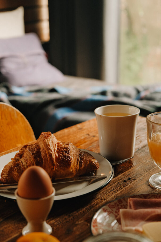 In de cabin beschik je over je eigen keukentje, maar bij Nutchel kun je ook kiezen voor een verzorgd ontbijt, brunch of diner. Dit wordt aangeboden in de vorm van goedgevulde manden, die je eenvoudig bij de receptie kunt ophalen. De ontbijtmand is een echte aanrader, boordevol lokale streekproducten. Voor een gezellige avond is de raclettemand perfect: kaarsjes aan, een gepofte aardappel in het vuur, kaas laten smelten in kleine pannetjes en volop genieten van de sfeer en het eten.